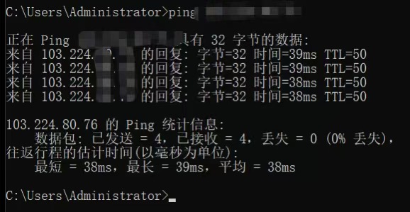 ping平均38ms 真延迟50ms 移动宽带实测